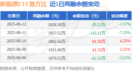 新能源ETF易方达:6月12日融资买入203.91万元,融资融券余额1828.3万元